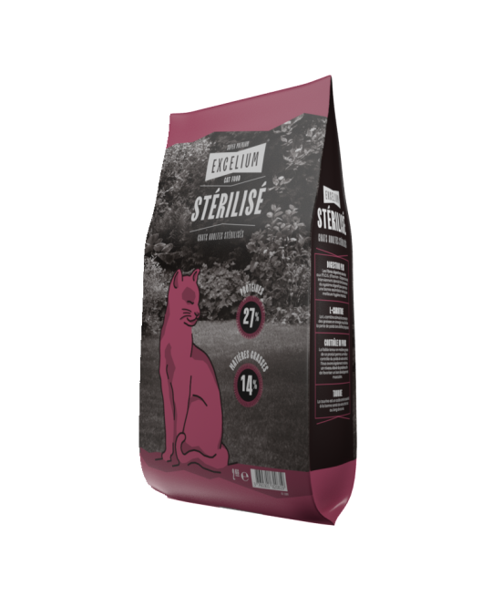 EXCELIUM STERILISE est particulièrement conseillé pour les chats adultes stérilisés qui n'arrivent pas à trouver un équilibre concernant leur ration alimentaire.